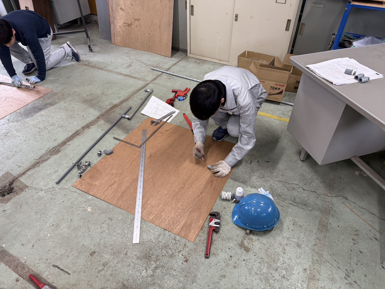 2年生の実習授業で、建築配管資格検定に向けた実技講習が実施されました。生徒たちは検定合格に向けて、熱心に実技に取り組む姿が印象的でした。