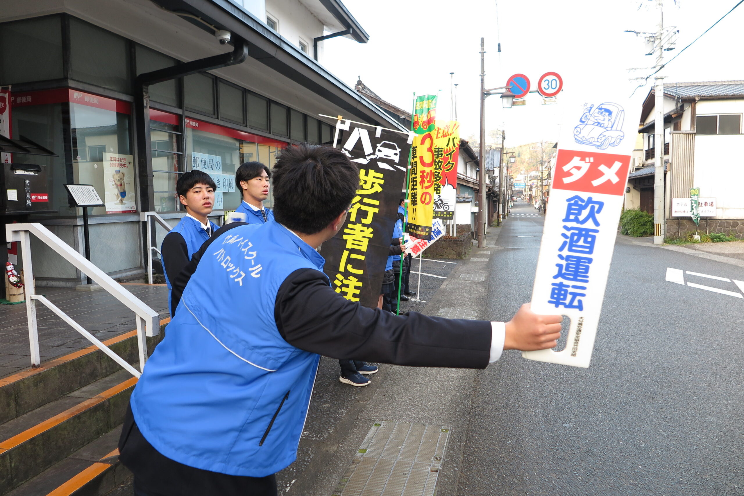 12月12日に竹田郵便局前で、交通安全運動を実施しました。生徒は大きな声であいさつをしていました。