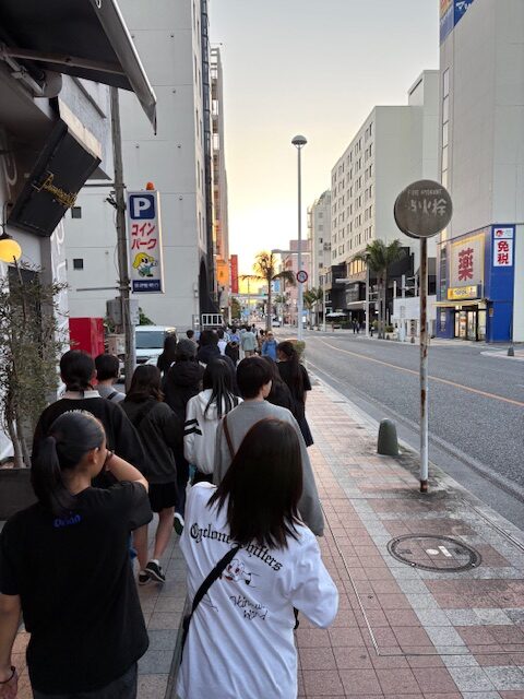 本日は午前中に平和学習、午後は国際通りの観光を行いました。天気にも恵まれ良い1日てよい研修になりました。