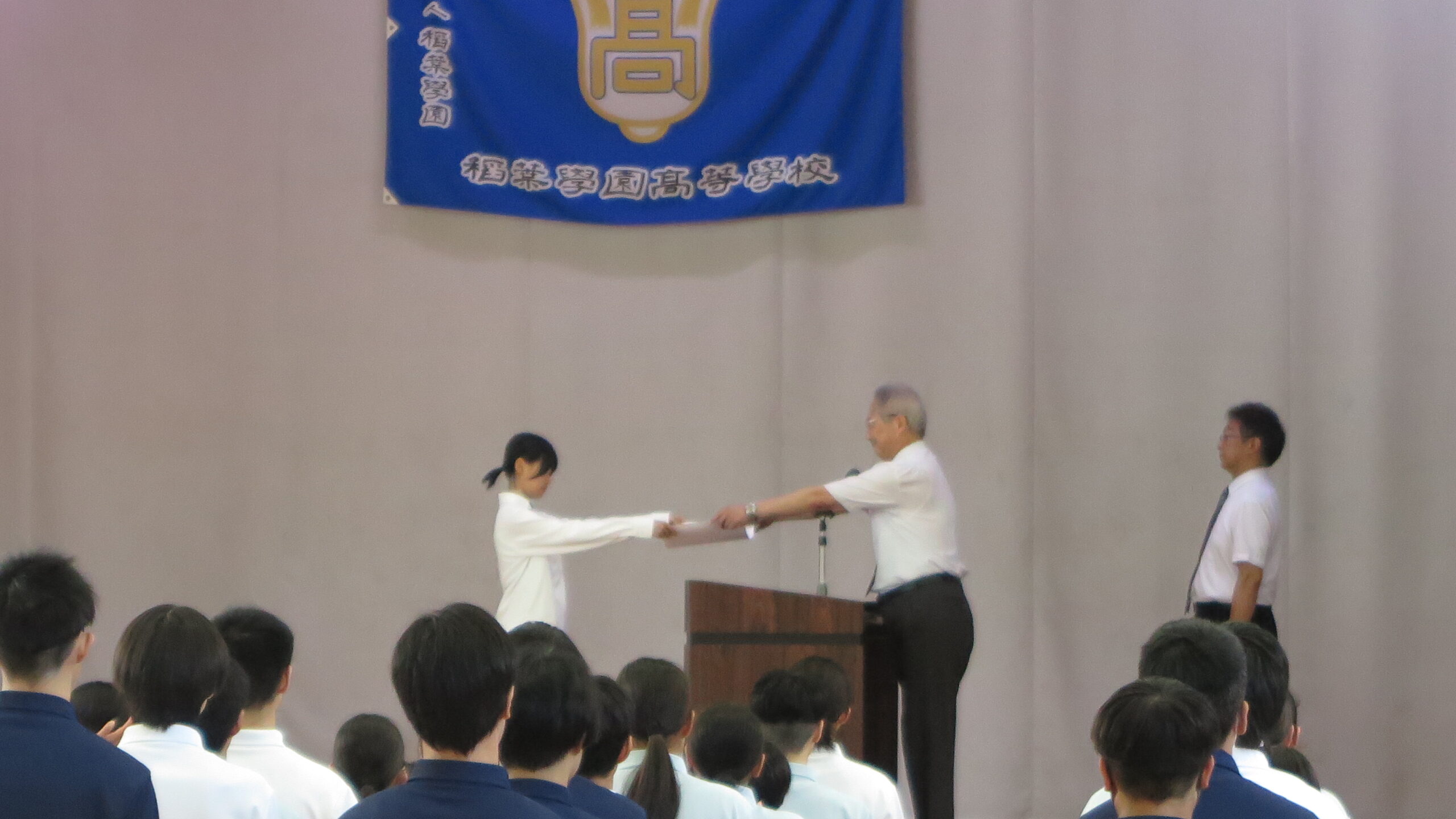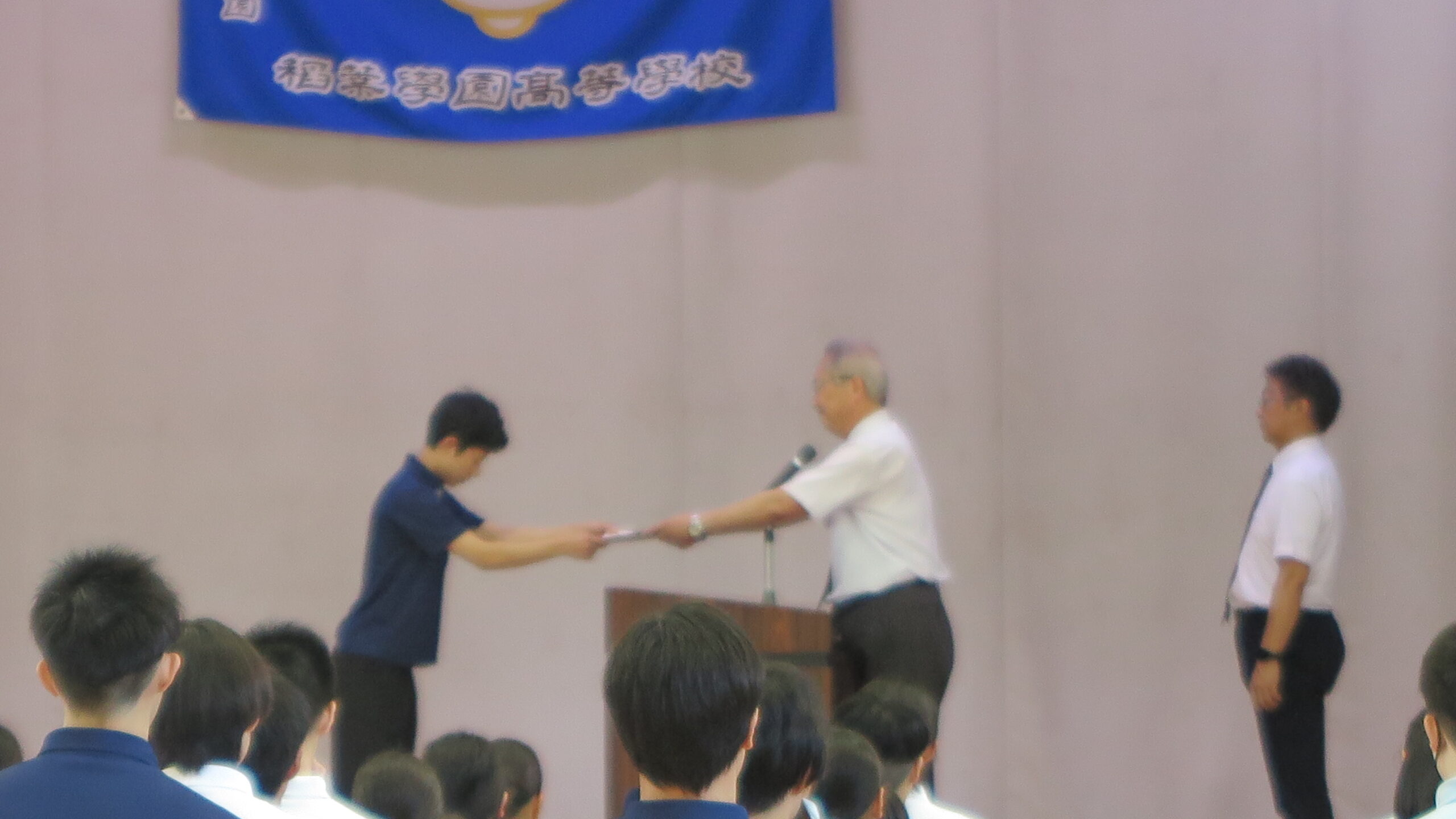 続いて行われた表彰式では、ガス溶接技能の認定や、国際調理師専門学校主催の料理コンテストでの受賞など、さまざまな分野で努力の成果を収めた生徒が表彰されました。