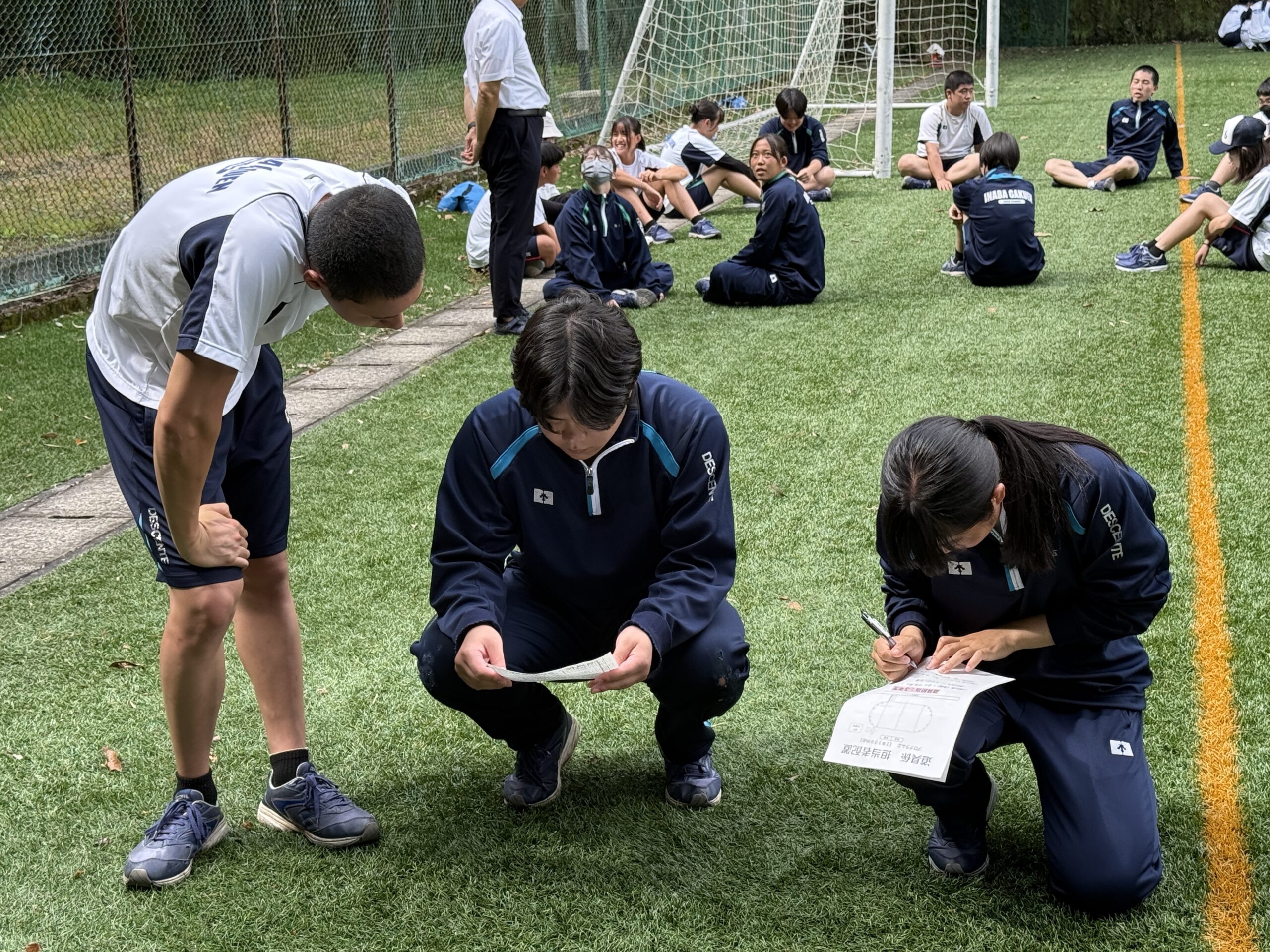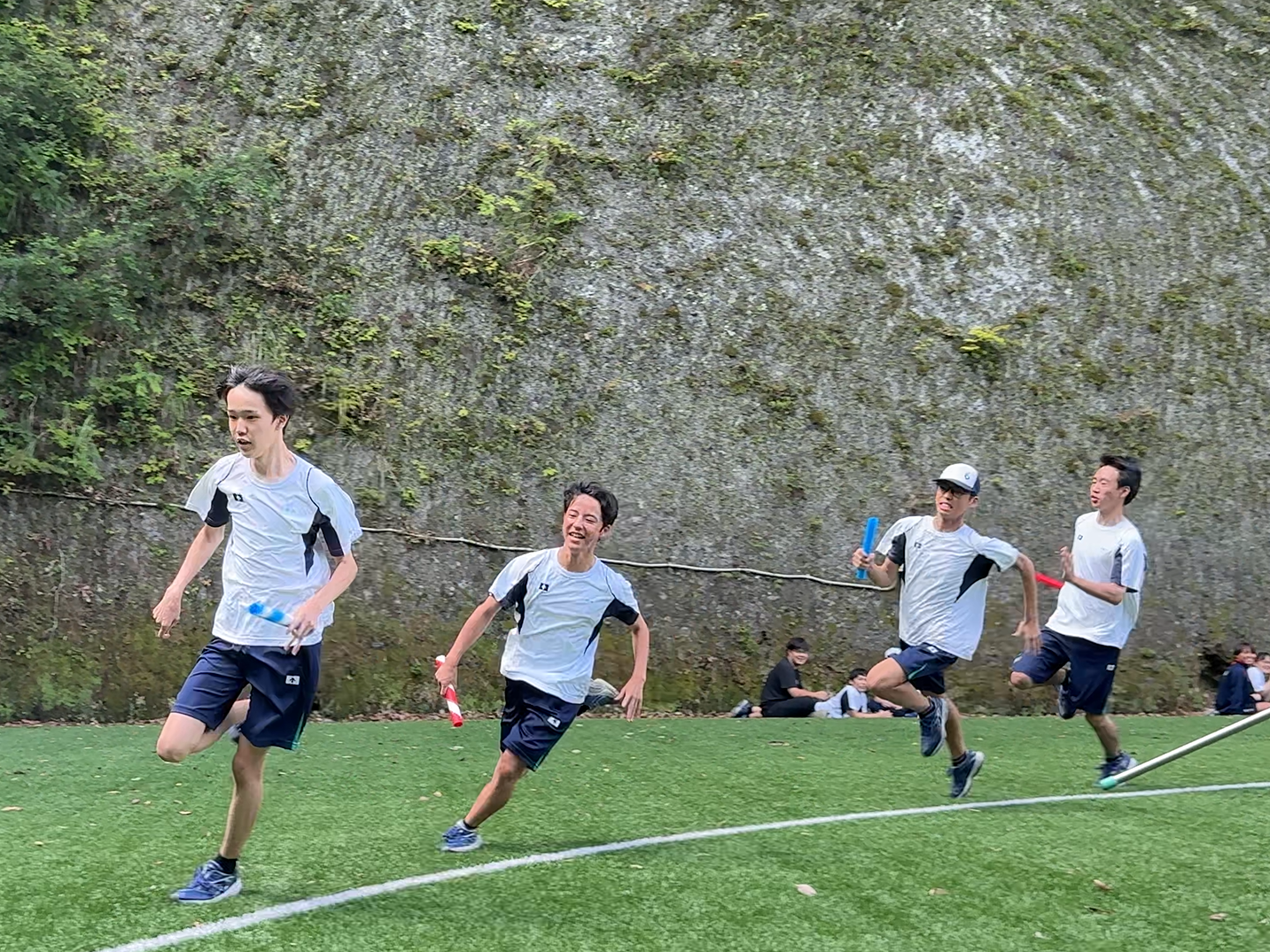 本日9月12日、本年度体育祭の第1回総合練習が行われました。生徒たちは自分たちの係などの役割を確認し、実際に出場する競技にも取り組みました。騎馬戦では練習ながら大きな歓声が響き渡り、フォークダンスでは恥ずかしそうな表情ながらもしっかりと踊る姿が見られました。また、リレーではグラウンドを全力で駆け抜ける生徒の姿に、応援の声が一段と高まりました。本番に向け、熱気と期待が高まる一日となりました。